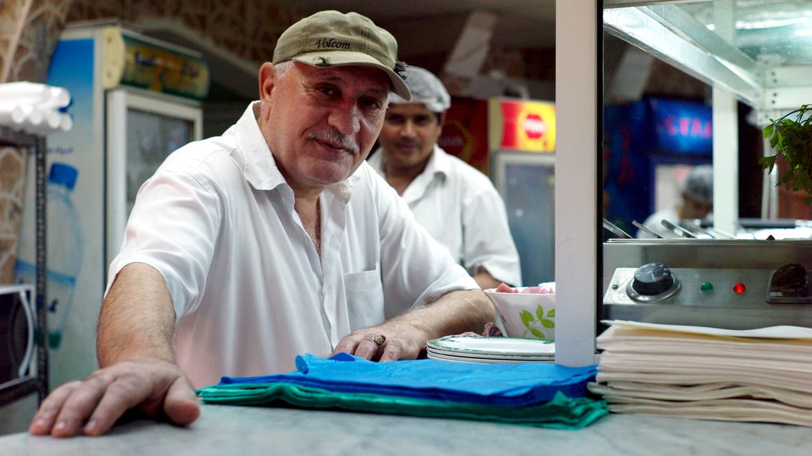 Omar, the head cook at the dukkan, moved from Iraq to Abu Dhabi.