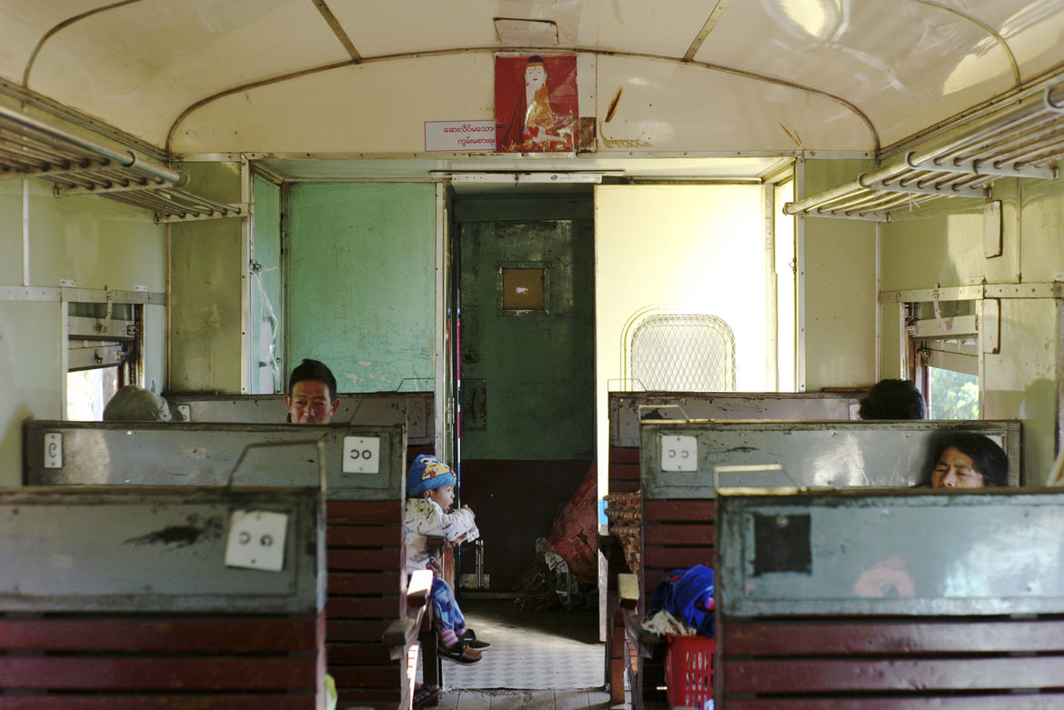 For three hours I travelled along the narrow railway path. Overgrown branches reached through the large open windows and grazed my arms. The train swayed back and forth. I traveled up and down the train cars talking to people, sharing home cooked fried bananas and rice, and taking photographs. I'll never forget getting off the train and my new Burmese friends leaning out the oversized windows waving goodbye.